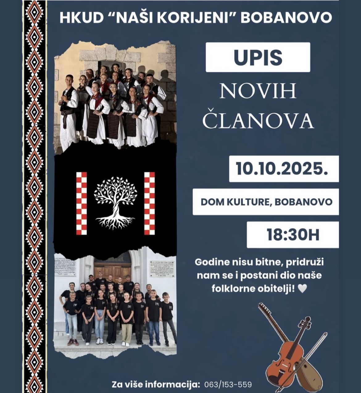 Upis novih članova održat će se 10. listopada 2025. godine u Domu kulture Bobanovo, s početkom u 18:30 sati.