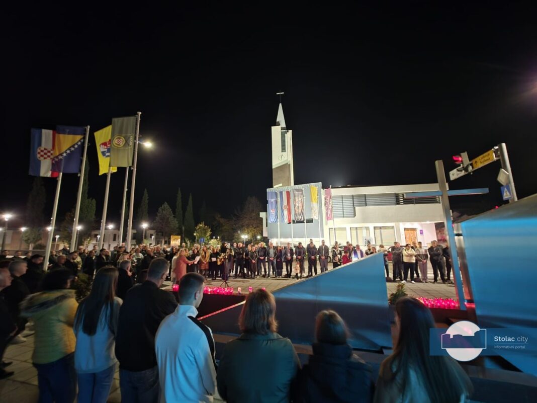 U središtu Stoca sinoć je, s početkom u 18 sati, ispred spomenika poginulim braniteljima, održana dostojanstvena večer sjećanja posvećena žrtvama Vukovara i Škabrnje, kao i obilježavanju obljetnice utemeljenja Hrvatske zajednice Herceg-Bosne.