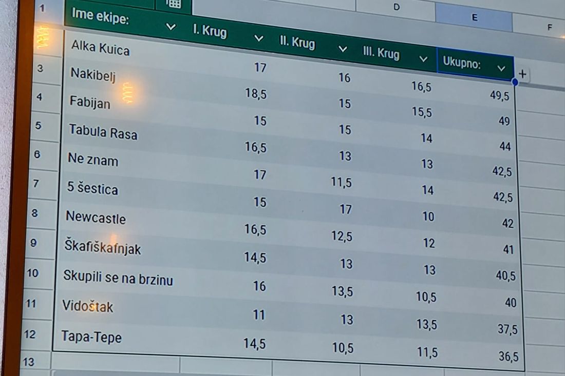 Sudionici su pokazali zavidno znanje, ali i smisao za humor i timski duh. Uz natjecateljski dio, večer je protekla u znaku druženja, smijeha i dobre glazbe. Najuspješnije ekipe kući su ponijele vrijedne nagrade: