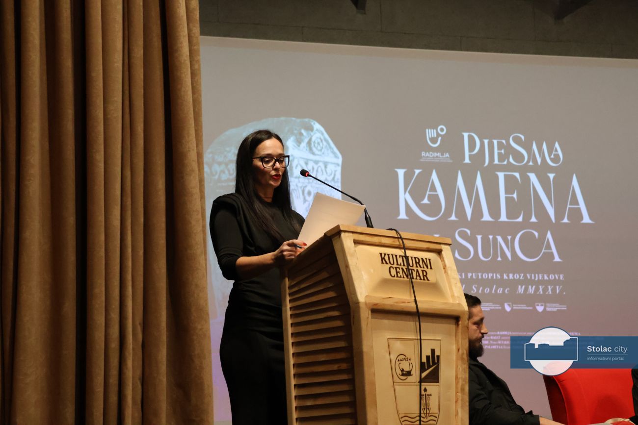 Večer je započela uvodnim govorom ravnateljice JU Radimlja, Maje Lopin, koja je pozdravila sve nazočne i zahvalila svima koji su na bilo koji način doprinijeli realizaciji filma. Istaknula je važnost ovog projekta za promociju kulturno-povijesne baštine Stoca i poticanje turističkog razvoja grada.