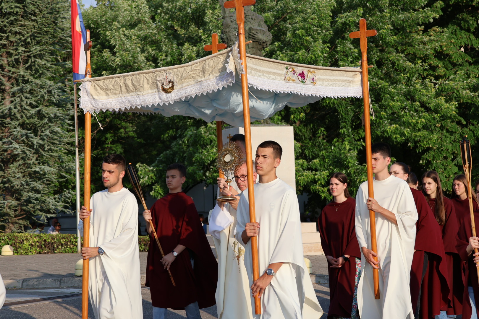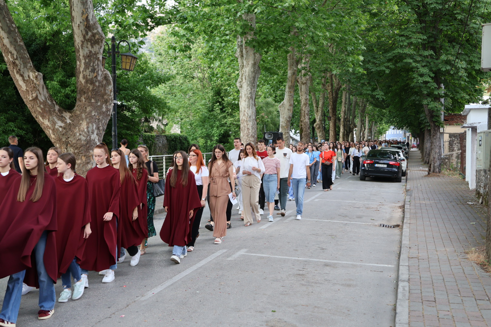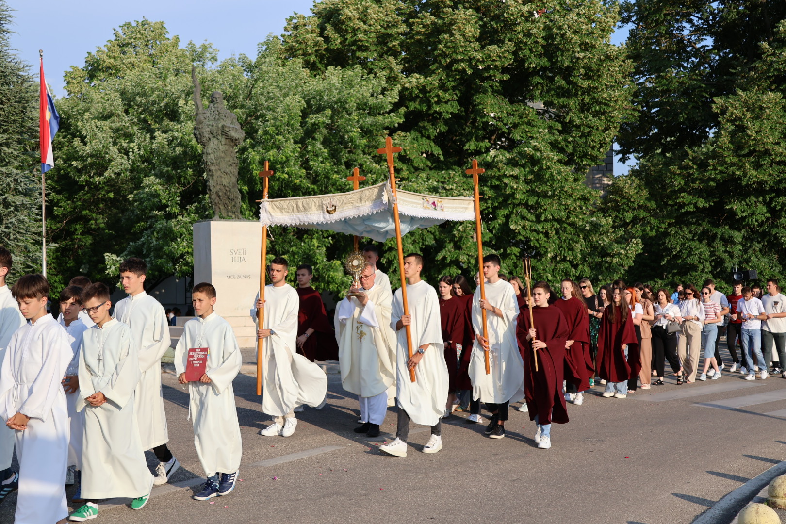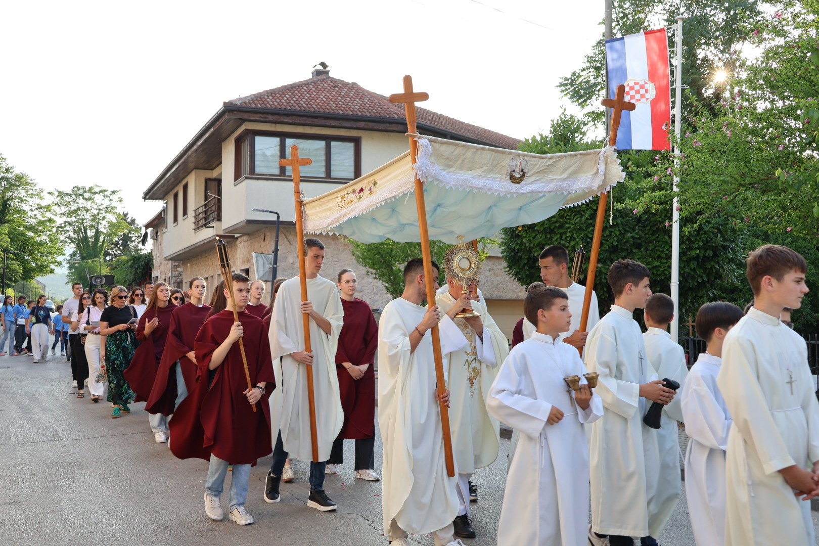 Po završetku mise uslijedila je svečana procesija s Presvetim Oltarskim Sakramentom kroz gradske ulice. Procesiju su predvodili mladići sa zastavama, prvopričesnici, krizmanici i djeca koja su posipala latice cvijeća. Slijedili su ministranti, bakljonoše, pjevači i ostali vjernici, a središnji dio činili su svećenik s Presvetim pod baldahinom te apostoli – maturanti – koji su nosili križ, svijeće i naizmjenično preuzimali nošenje baldahina.