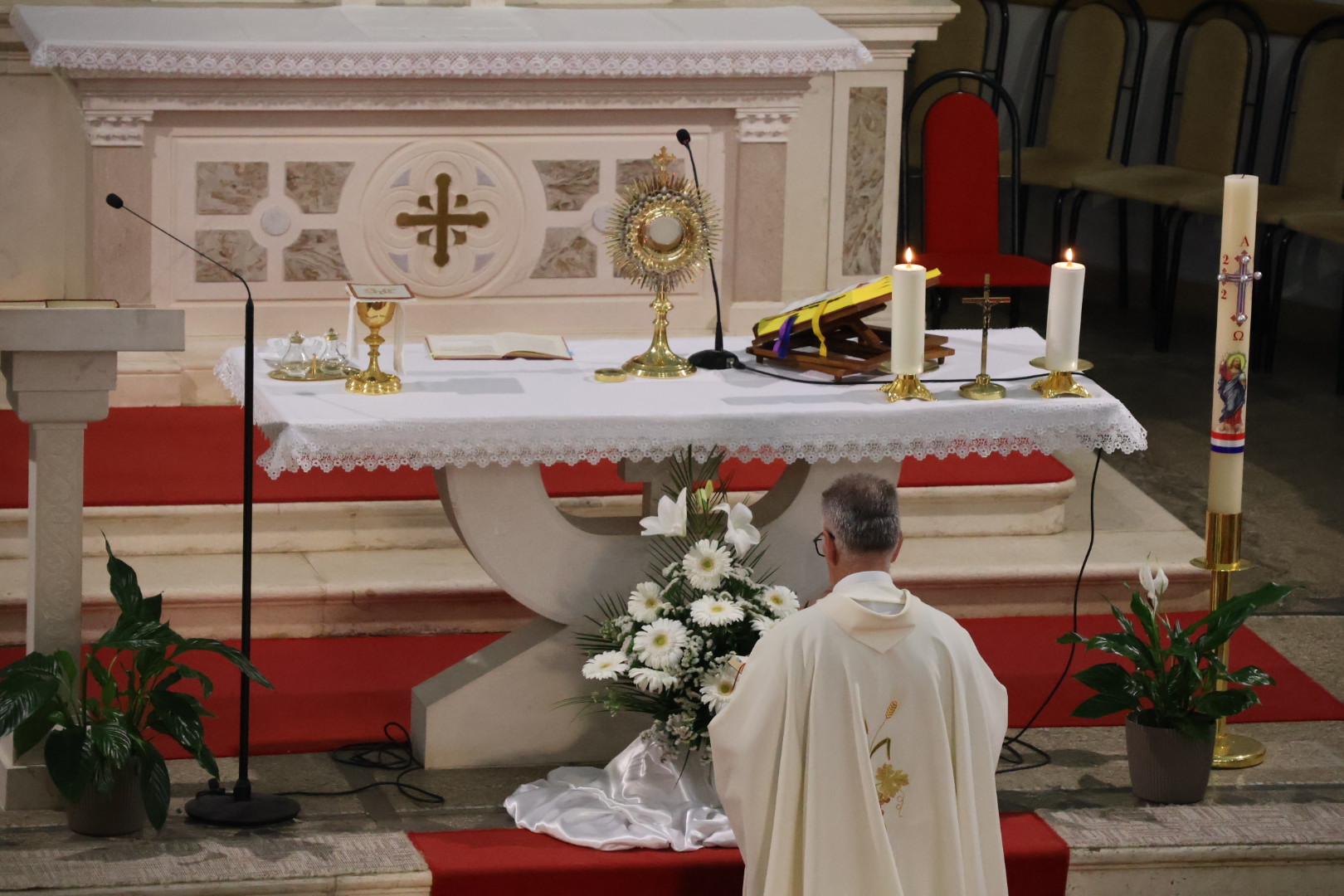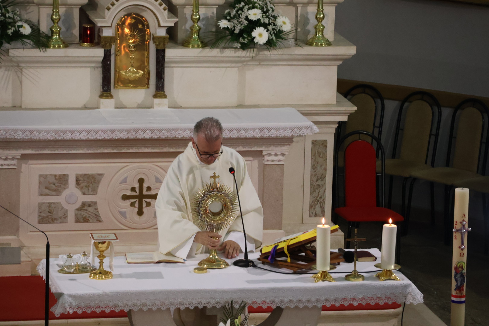 Svečanu svetu misu u 18:00 sati predvodio je župnik don Gordan Božić. U uvodnom obraćanju, župnik je pozdravio okupljene vjernike i potaknuo ih na razmišljanje o dubokom značenju ove svetkovine, naglasivši važnost iskrenog kajanja i prisutnosti Krista u Euharistiji. Tijekom nadahnute propovijedi, pozvao je vjernike na svjesno življenje vjere i trajno sjećanje na Kristovu žrtvu.